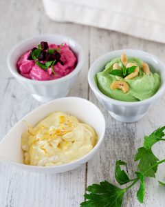 La maionese è pronta e ottima. Volendo si possono aggiungere a piacere spezie o erba cipollina o colorarla con le polveri di verdure essicate (rapa rossa, carote etc)